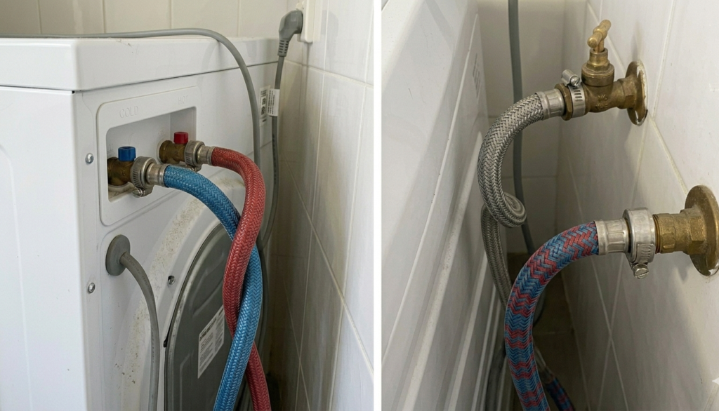 First, pull the machine out a little bit and look at the hoses that carry hot and cold water. Make sure they are completely straight and don’t have any sharp bends. Next, check to see that the real water faucets on your wall are all the way open. It sounds easy, but handles can sometimes be bumped and turned off by accident.